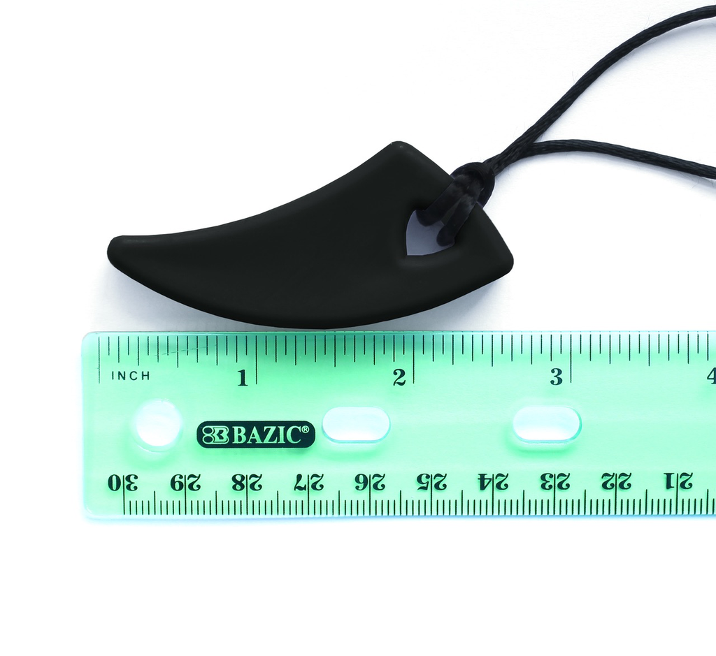 ARK's Saber Tooth Chew Necklace is perfect for sensory seekers of any age and provides a safe, wearable, discrete, and cool solution for those who need to chew. Use this "chewelry" as an oral fidget (or even hand fidget) to help calm, soothe, and self-regulate during times of stress, to better focus during homework and other activities, for sensory oral motor input, and/or as a safe alternative to chewing/biting on fingers, knuckles, shirts, pencils, etc. ARK's Saber Tooth comes in 3 color-coded toughness levels: Magenta, Red, or Light Grey = Soft (very chewy), recommended for mild chewing only Lime Green, Teal, or Black = XT (firmer, but still chewy), for mild to moderate chewing Royal Blue, Lavender, Forest Green, or Dark Grey = XXT (the most firm), recommended for those who like to chew on firm / fairly rigid items. This is also the longest lasting level for avid chewing.