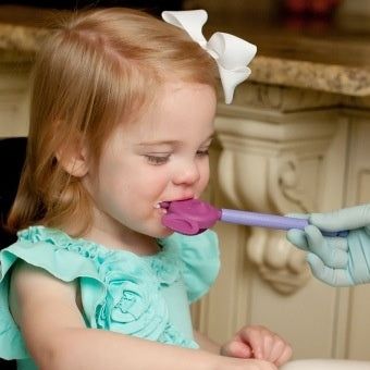 Use the textured ears as spoons to decrease texture aversion. Or, use the bite blocks on the back of the tips to practice jaw grading and stability. They can also be used to work on biting/chewing skills, coordination of movement, discrimination, and of course play therapy.
