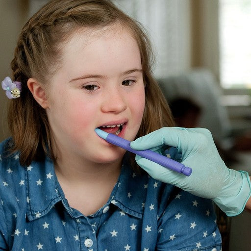 These cylindrical tips were specifically designed to promote a sustained bite and to improve jaw strength and stability. Use them outside the mouth on the cheeks and lips for added stimulation.