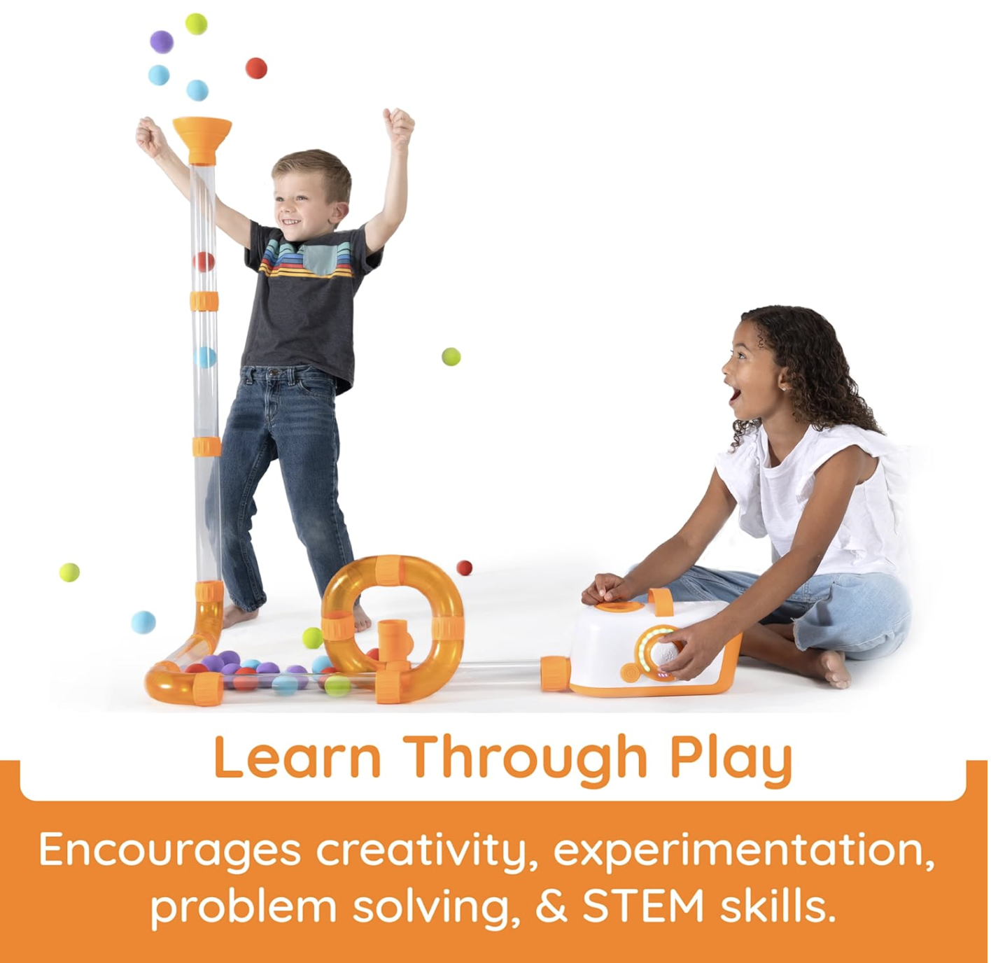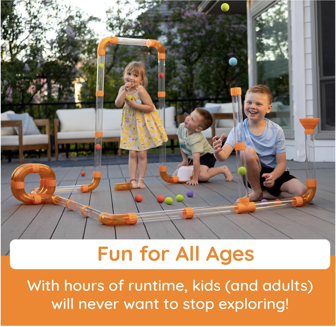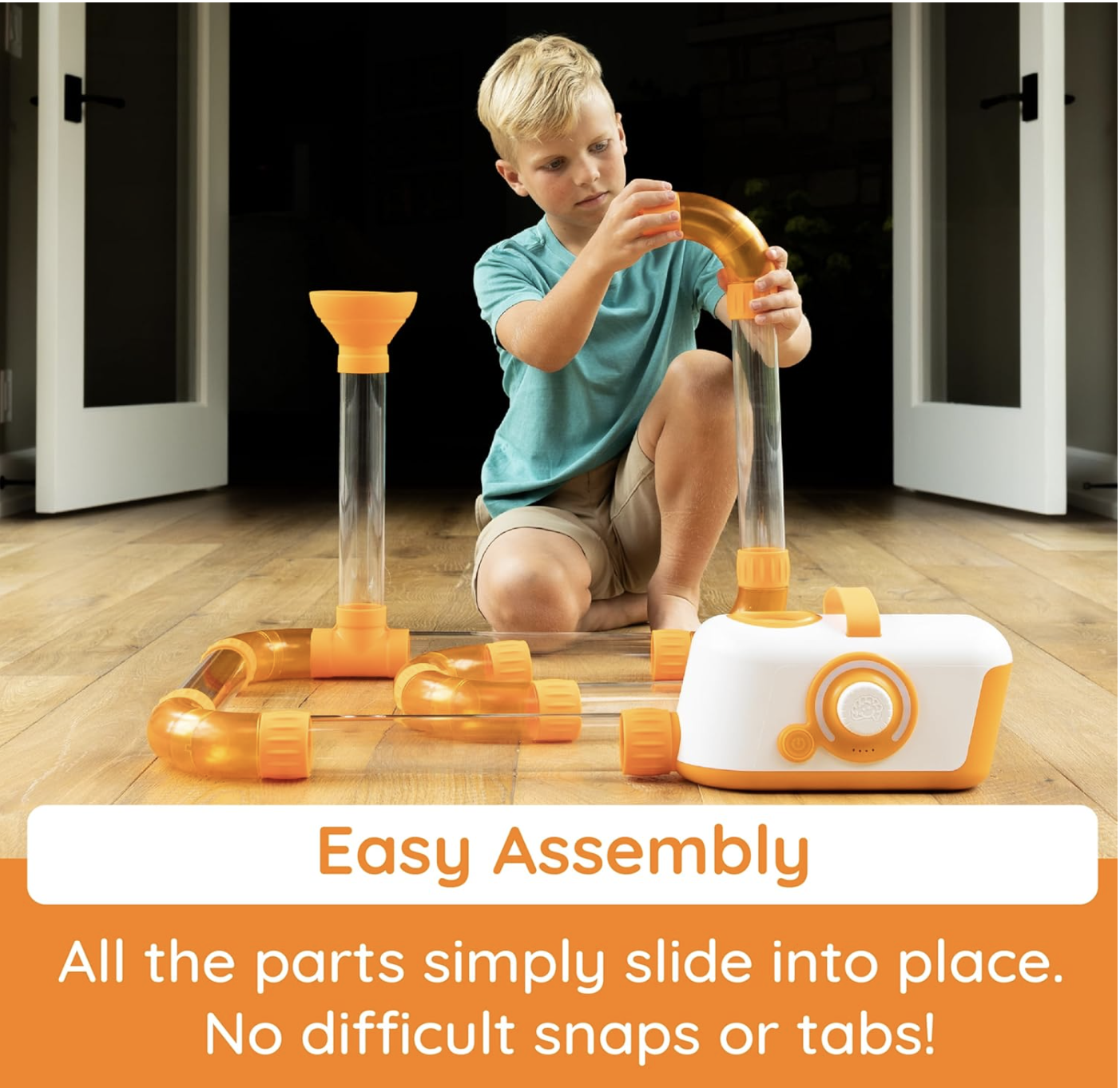 - Visual: Kids watch the foam balls move through the clear modular tubes, observing how airflow affects their path.