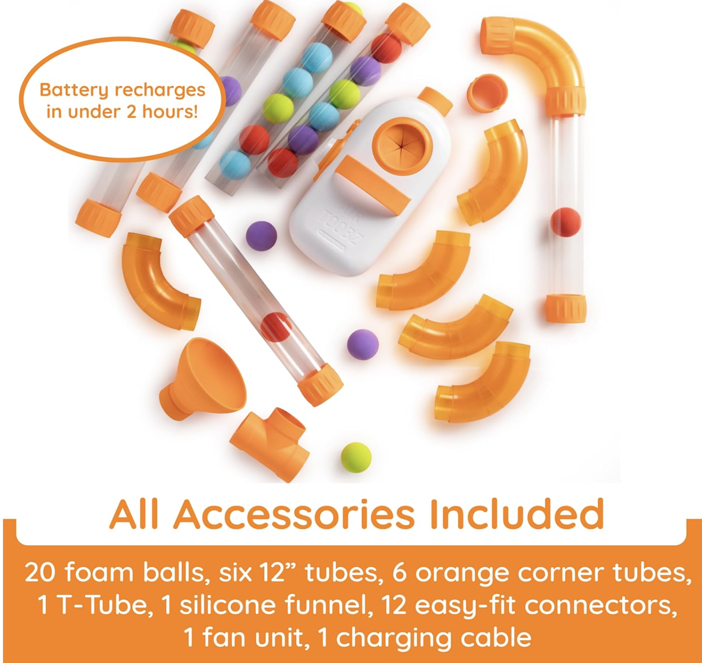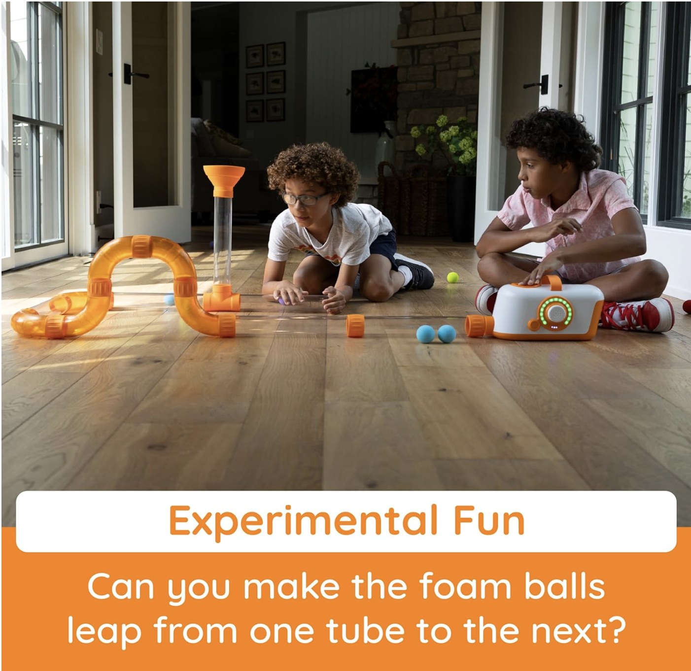 Explore STEM learning with Fat Brain Toys Air Toobz, an air-powered building toy for kids aged 3+. Enjoy creative problem-solving with modular tubes and safe foam ball propulsion. Rechargeable for hours of fun.