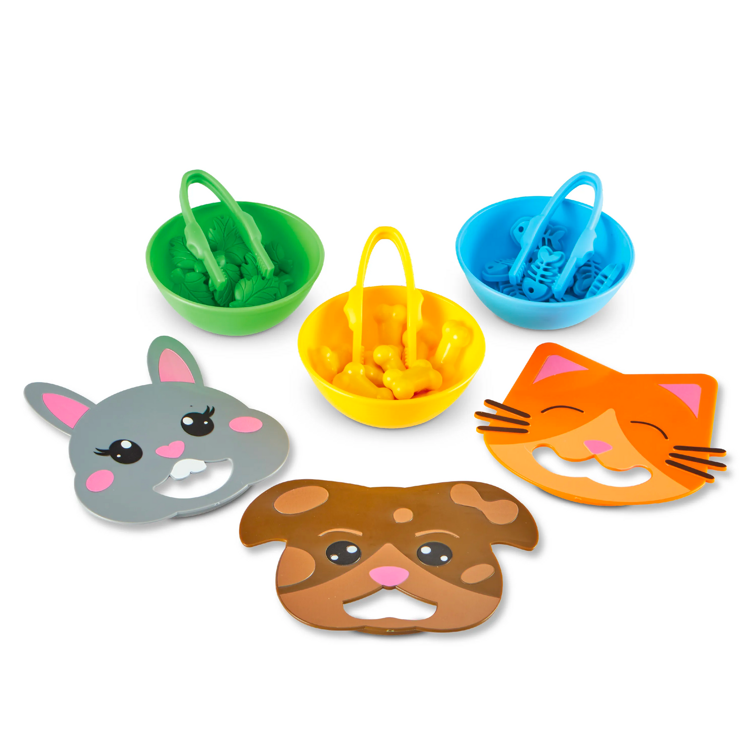 - Group Play Ready: The set includes three bowls, three animal toppers, and three sets of tweezers, making it ideal for small group activities and cooperative learning.