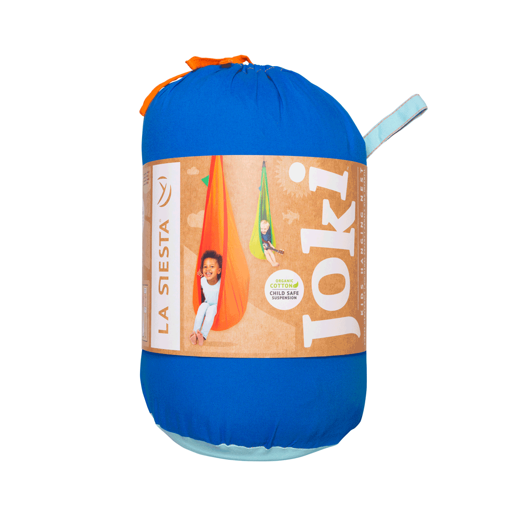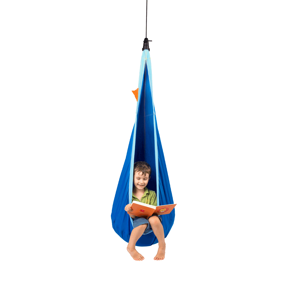 The Joki hanging crow’s nest, is The Original Kids Pod Swing—Since 2009—Reinvented!!! Now with one of a kind safety features: all Jokis include a unique, patented safety swivel and suspension kit. Installation is quick & simple, and you can rest easy knowing that your little one is safe. The Joki hammock swing is still the perfect refuge for children with sensory processing sensitivities, anxiety, PTSD, those on the Autism Spectrum, or those who just need a quiet place to escape. It offers relaxation and stimulates imagination in children 3 to 10 years old.