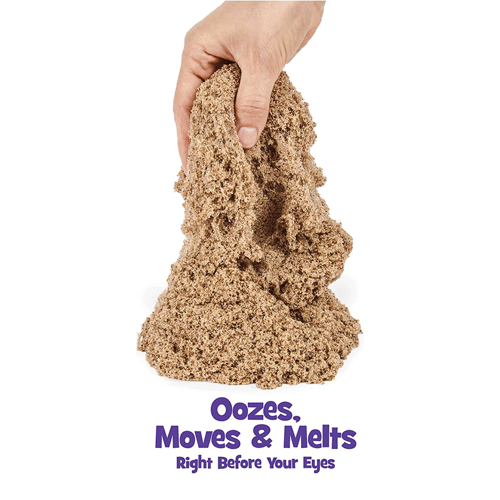 This magic sand sticks to itself, not to you! It oozes, moves, and melts right before your eyes. It flows through fingers like a slow-moving liquid, but leaves them completely dry. Soft, easy to shape or sculpt with hands or molds and impressively holds its shape. It never dries out or hardens so you can build again and again!