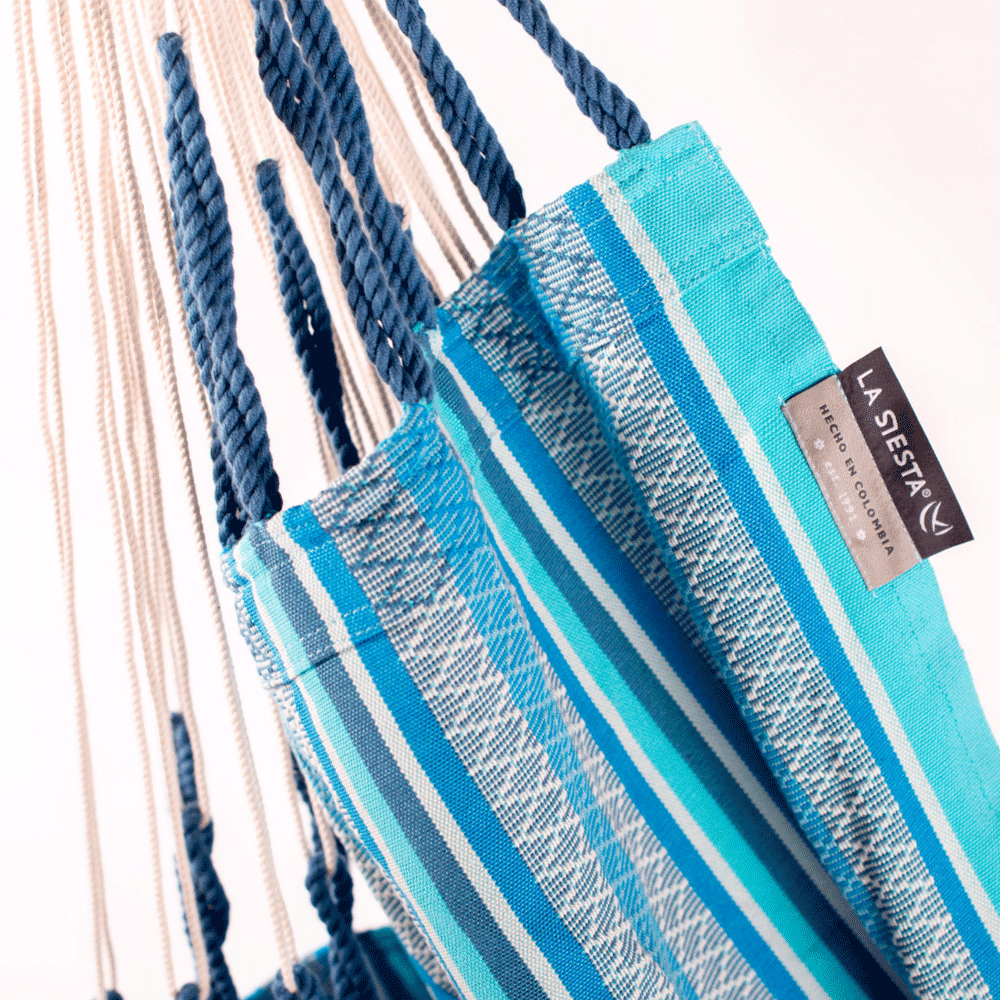 Where relaxation meets sustainability: the Habana Hammock Chair is made of soft, certified organic cotton and responsibly sourced FSC wood *STAND SOLD SEPARATELY. It’s as ethical as it is beautiful. A hammock, but in a seated position! Suspended from the ceiling, a beam or branch, hammock chairs are a highlight for your living environment, inside as well as outside. Thanks to the soft swinging that hammock chairs provide, your child’s sense of balance is promoted as well as the general development. LA SIESTA hammock chairs are recommended by the Federal German Association for the Promotion of Posture and Physical Exercise. The La Siesta Habana Organic Cotton Comfort Hammock Chairs are made of the highest-quality, organic cotton. It is from Colombia, where hammocks have always been part of the cultural heritage. Doubled weft threads provide a high degree of tear-proofness for the selvedge. The spreader bar is made of bamboo from well-managed forests (FSC®). LA SIESTA hammock chairs provide an integrated safety swivel, which makes the product more robust and ensures a safe turning and rotating in the chair.