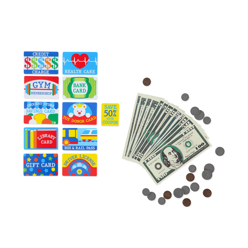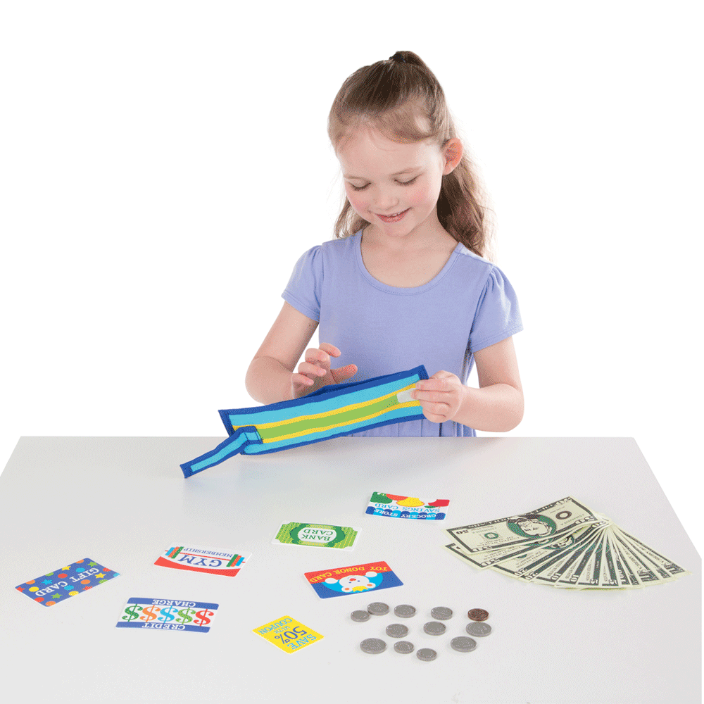 - Toy wallet with play money and write-on cards