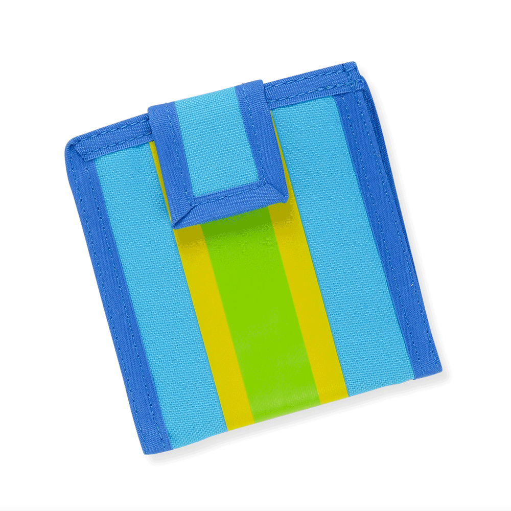 The folding nylon wallet with a self-stick tab closure has a long pocket to tuck away 14 play money bills, a see-through pouch for the 19 play coins, and handy slots for organizing 11 write-on cards, including bank cards, drivers license, library card, bus pass, and more! There are even "coupons" so young shoppers always get the best deals!