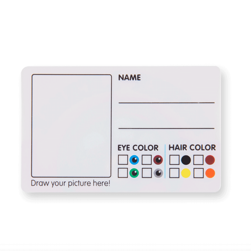 - Write-on cards include drivers license, bus and Rail pass, 2 coupons, and store, bank, charge, gym membership, health, library, and toy donor cards