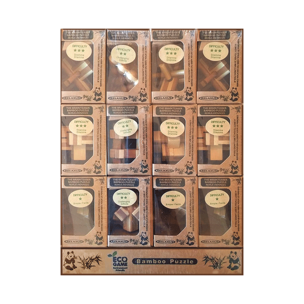 Each of the 3 different difficulty level puzzles is individually packaged in eco-friendly packaging—and includes the puzzle's solutions. With each puzzle see if you can figure how to take apart all the pieces through careful maneuvers. Watch carefully as the second part of the puzzle is to put all the pieces back together.
