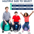 *These specifications serve as a guide in determining the appropriate size of ball to use when exercising in a sitting position. Other considerations include the person's weight and the specific exercise program in which case one should consult a therapist or professional trainer.