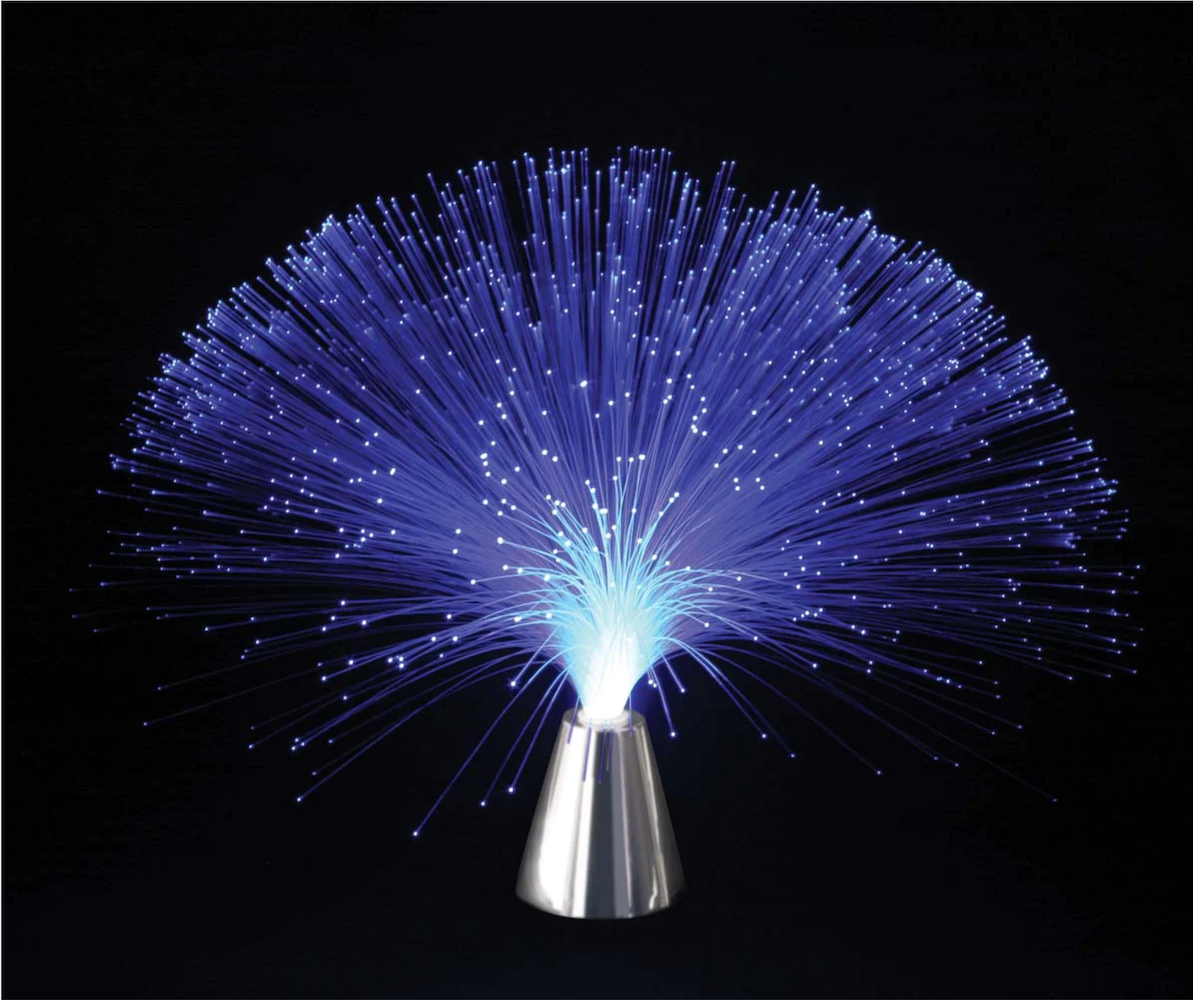 Turn on this lamp and Blue Light emits from the tip of each fiber optic strand on this 13.5 inch lamp. Great for quiet time as well as parties & gatherings. Can be used indoors or out — any place you want to set the mood! Mesmerizing to watch and beautiful too!