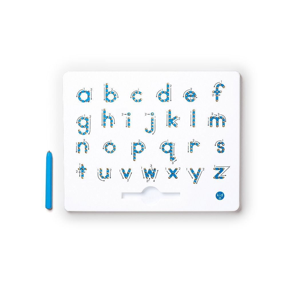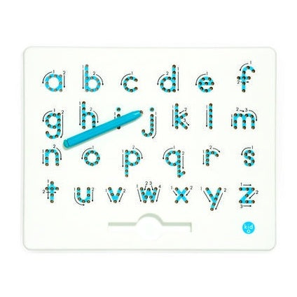 With the Kid O a to z Lower Case Magnatab, a magnetic stylus is the pen, the bead board the paper, your finger the eraser; the pull of the magnet engages sense memory in early writing and reading lessons.