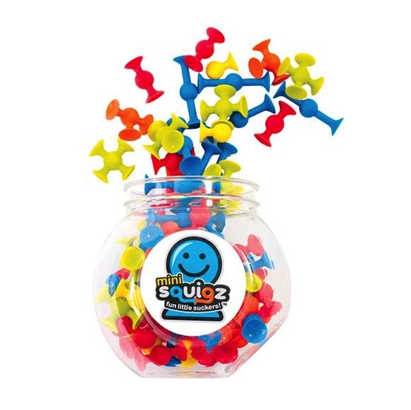 Mini Squigz are all about freedom of expressive construction while boosting fine motor skills to whole new heights. The moment you pick these little suckers up, your hands won't want to stop exploring, experimenting, and endlessly constructing! They're like vitamins for your hands and brain! Whether in the playroom, at the office, on the coffee table, or even in the car on a long road trip, you're sure to have B-I-G fun with Mini Squigz.
