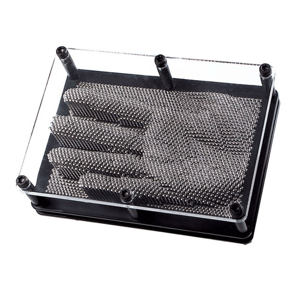 Stimulate the imagination and create three-dimensional pieces of art with Toysmith Pin Art! Pin art uses hundreds of moveable metal pins to create 3D images. The pins are fitted into a sturdy plastic frame that is both lightweight and durable. The pin art frame measures 3.8-inches by 5-inches, perfect for a bookshelf or table top. Pin art is tactilely stimulating and is a great calming fidget for the classroom, home or car.