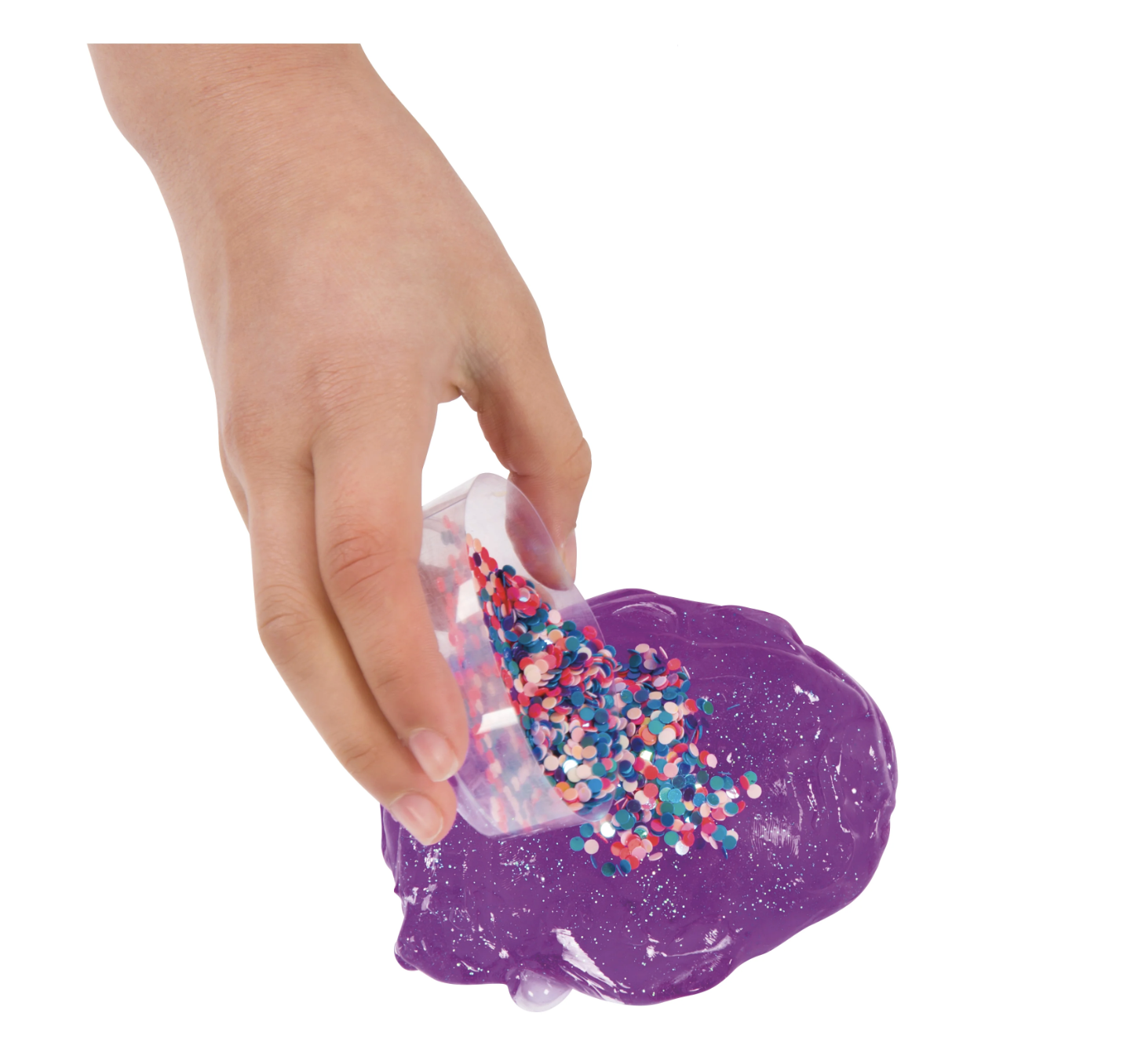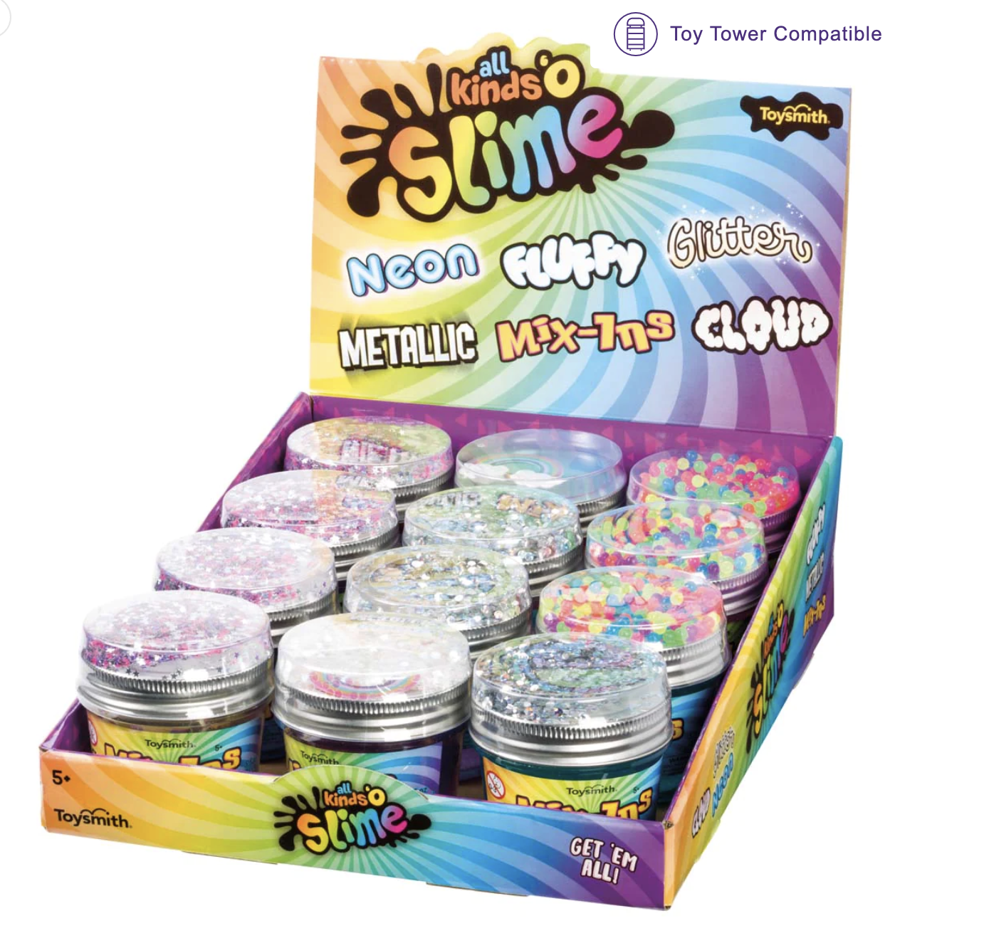 Toysmith Mix-Ins Slime Kit offers colorful fun with 5.5 ounces of slime in resealable jars topped with various mix-ins like star confetti and rainbow dots. Perfect for parties, classroom rewards, and stress relief.